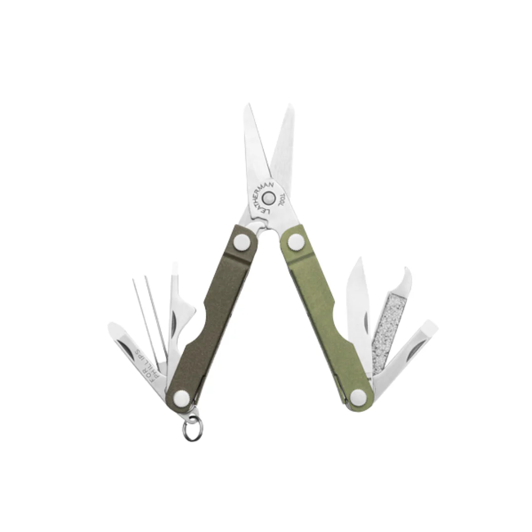 A knife, tweezers, file, spring-action scissors and more packed into a 1.8 oz. keychain-sized multi-tool.A knife, tweezers, file, spring-action scissors and more packed into a 1.8 oz. keychain-sized multi-tool.The Leatherman Micra is our most popular mini-tool with anglers, hobbyists and those who can appreciate the best spring-action scissors around. Personal care features that fit on your key chain are just part of what makes the Micra truly unique. Ten useful tools are packed into this tiny, lightweight Leatherman. Perfect for a tackle box, pocket, purse, fanny pack, or sewing kit, the Micra makes a great gift. CLOSED LENGTH 2.5 in | 6.5 cm