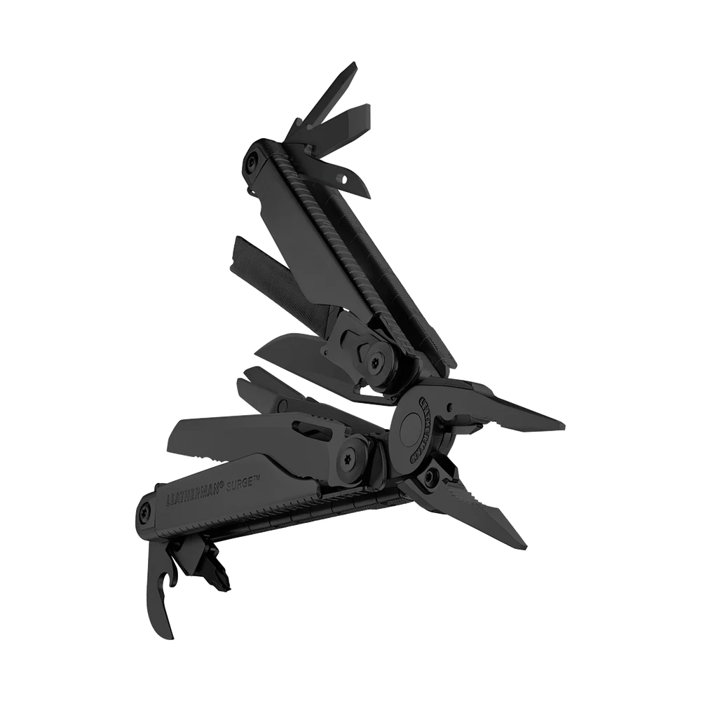 This heavy-duty workhorse has extra-large scissors, full-size knife blades, replaceable wire cutters and moreThe Leatherman Surge is one of our two largest multi-tools; a real powerhouse, built with our largest pliers, longest multi-tool blades and easy-to-use locks. A unique blade exchanger, replaceable 154CM wire cutters and four outside-opening blades give you quick access to the tools you use most. The Surge was built for tough jobs and the hands that do them. CLOSED LENGTH 4.5 in | 11.5 cm